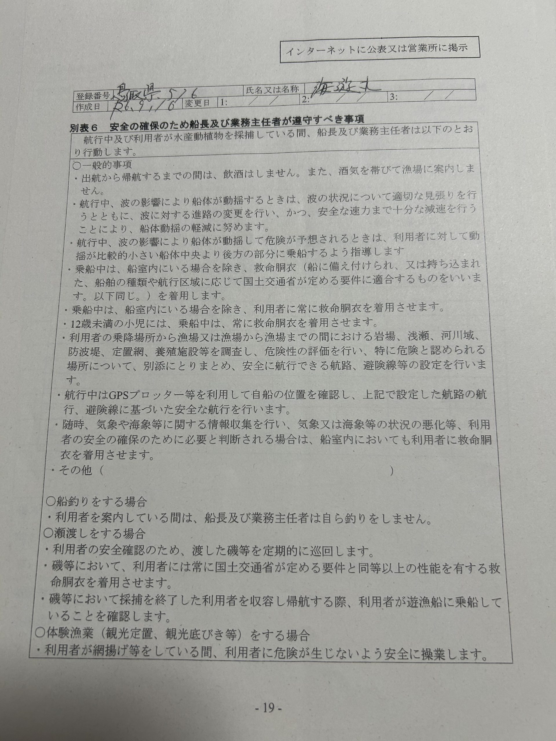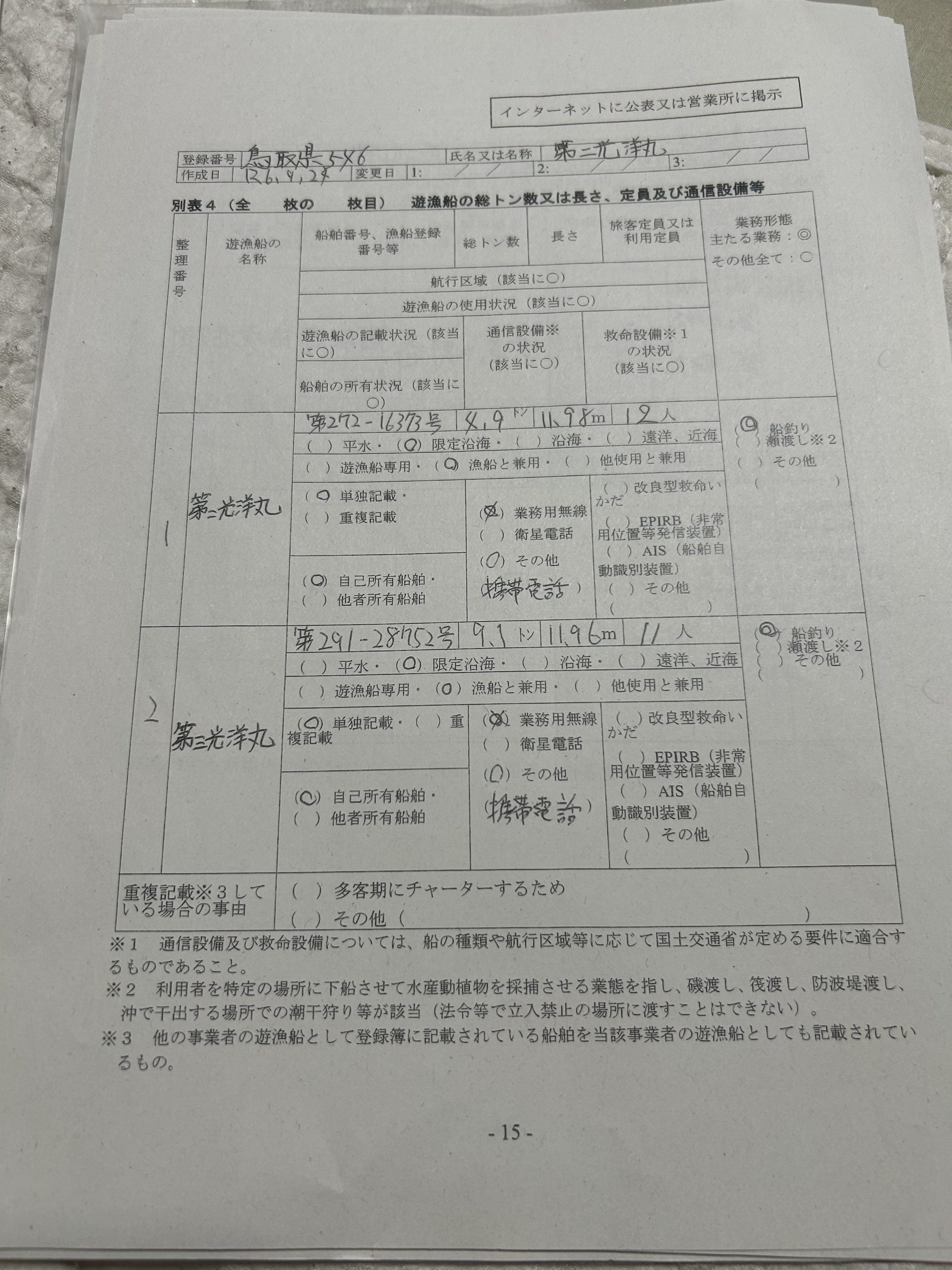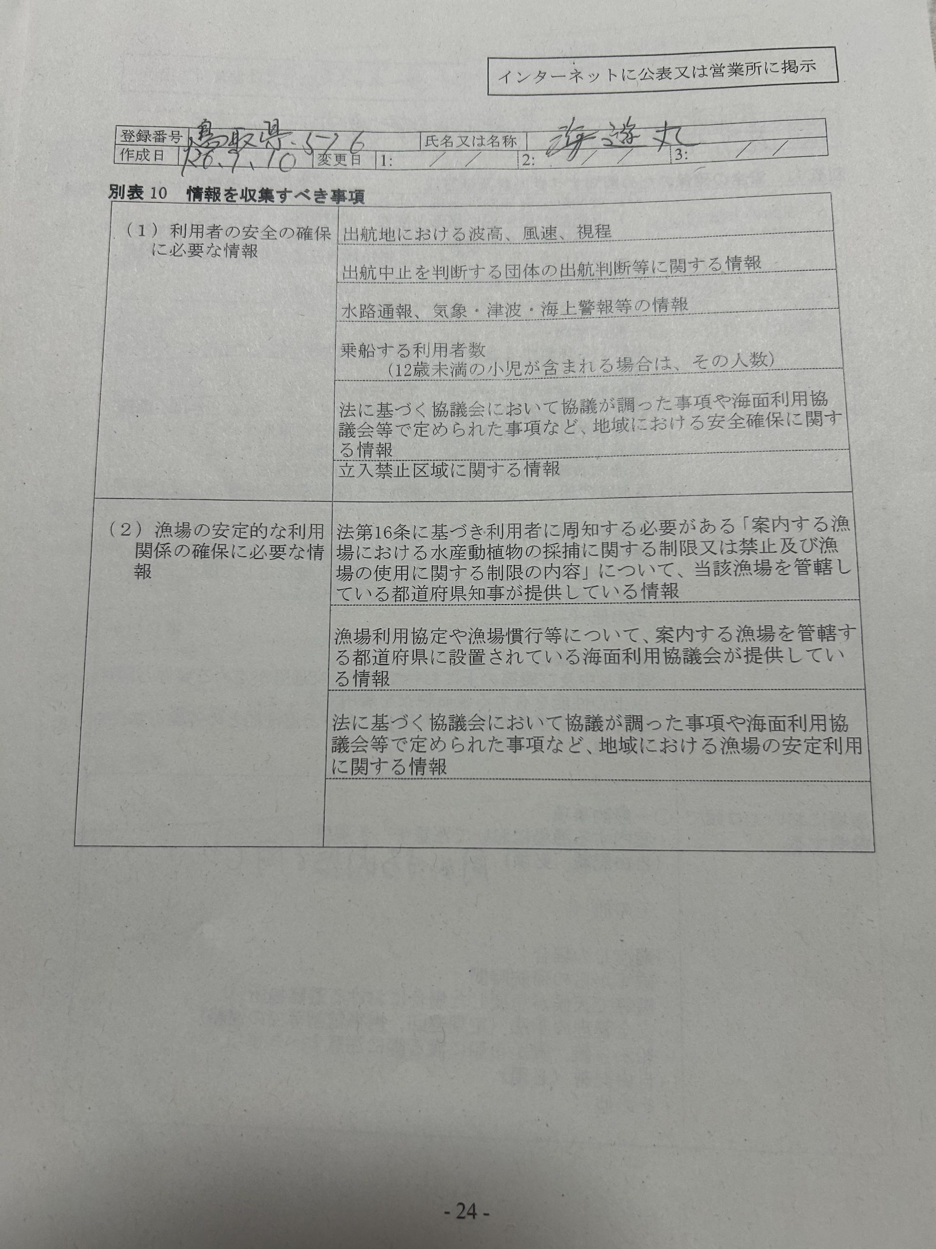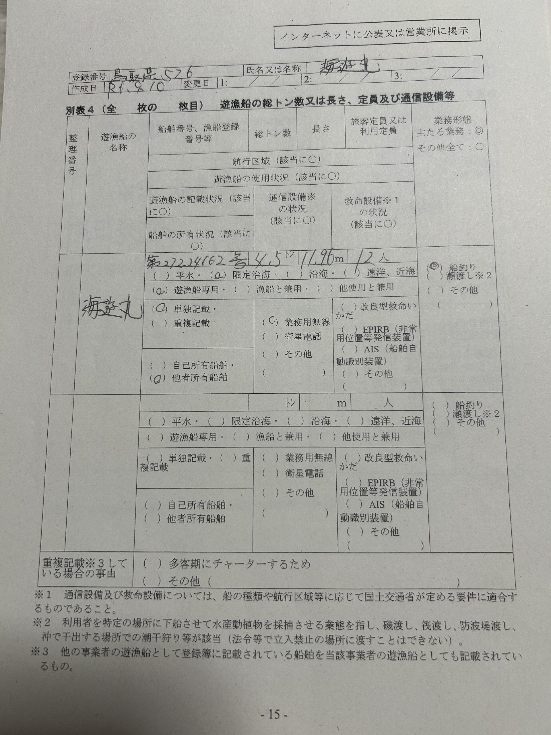 遊漁船業者登録情報