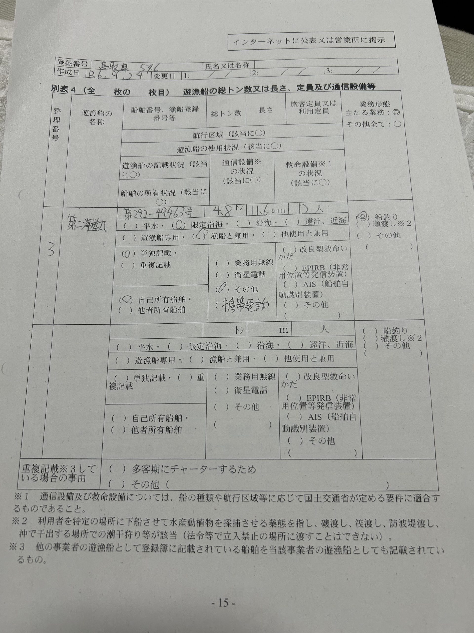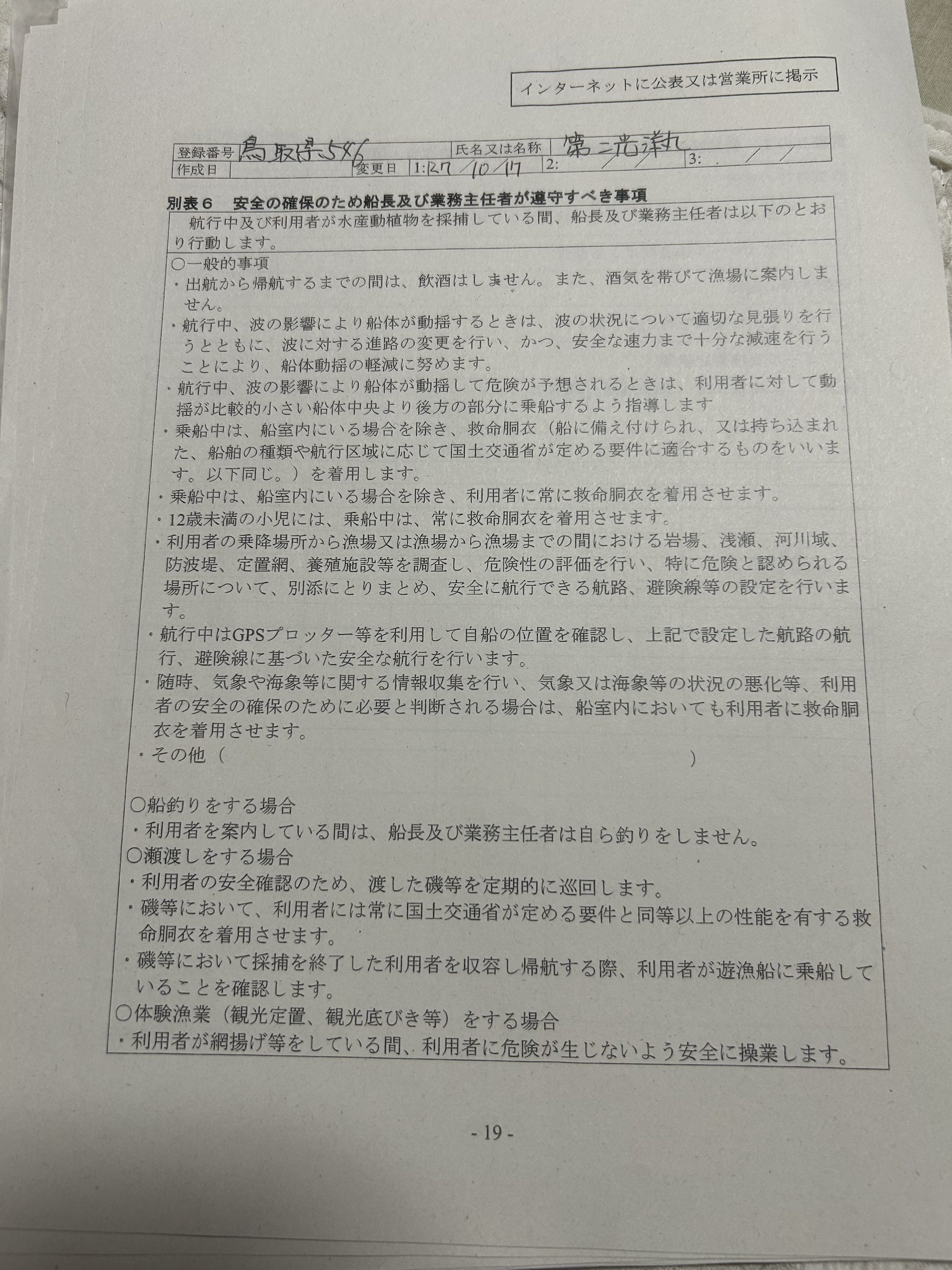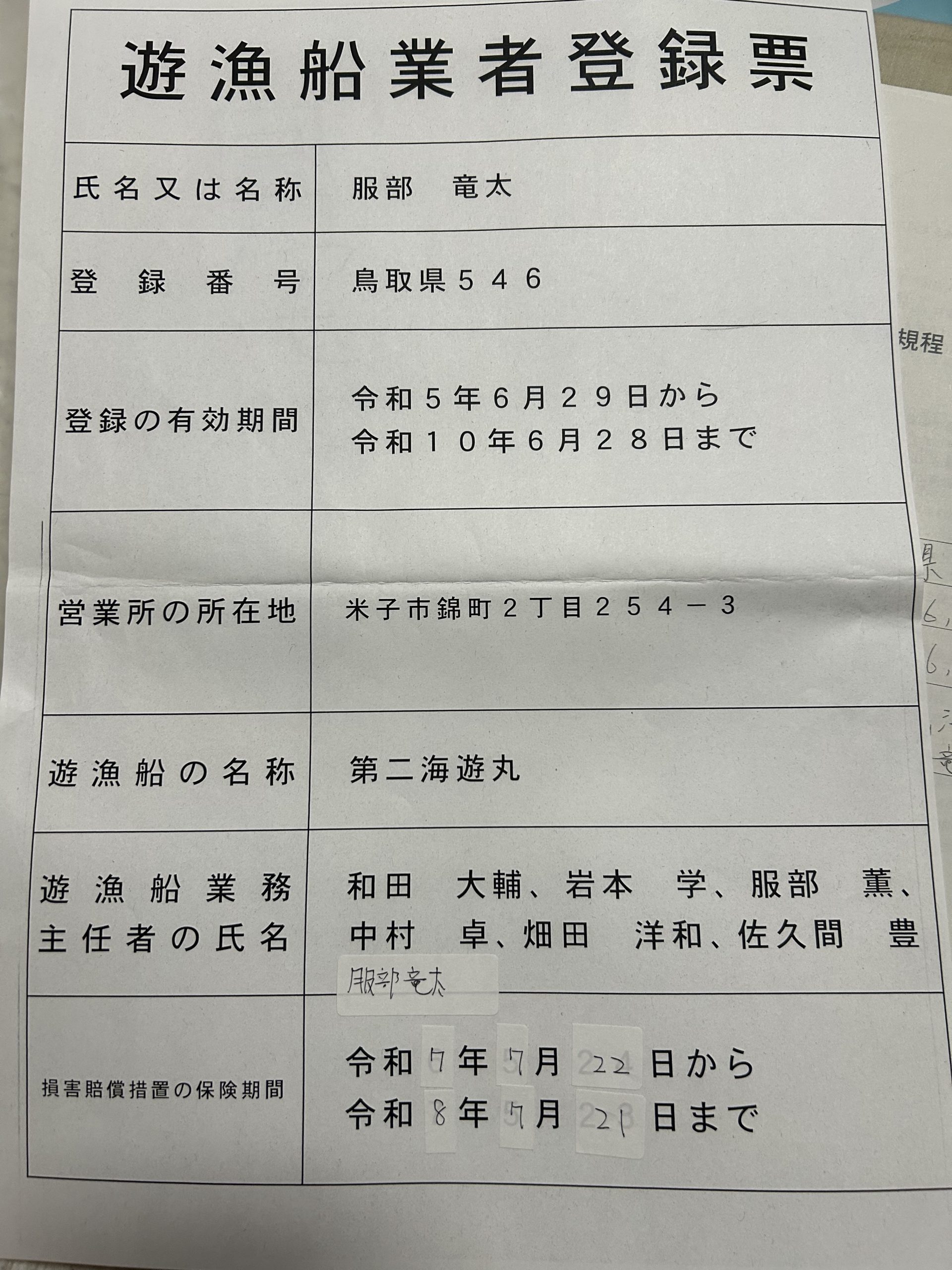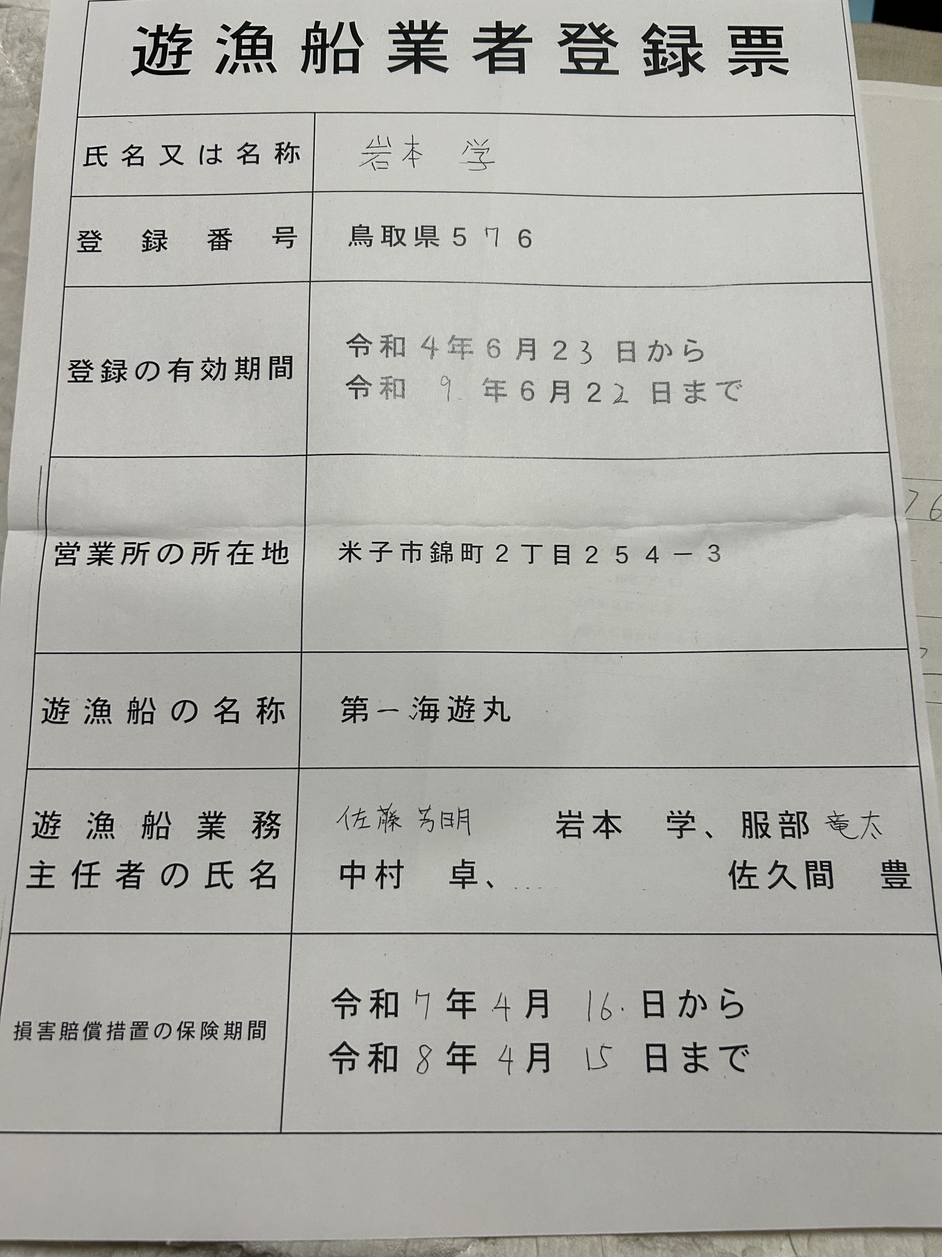遊漁船業者登録情報