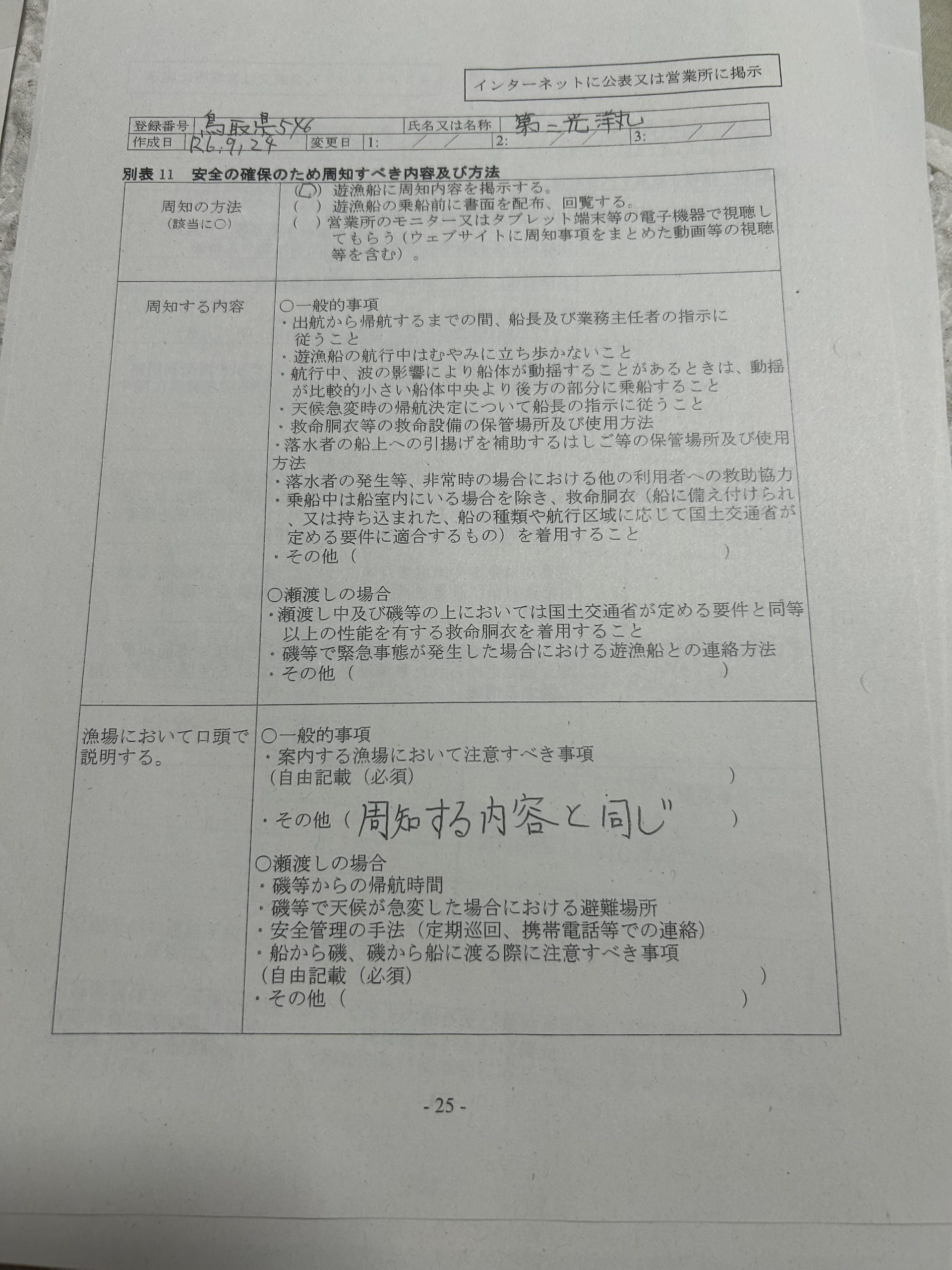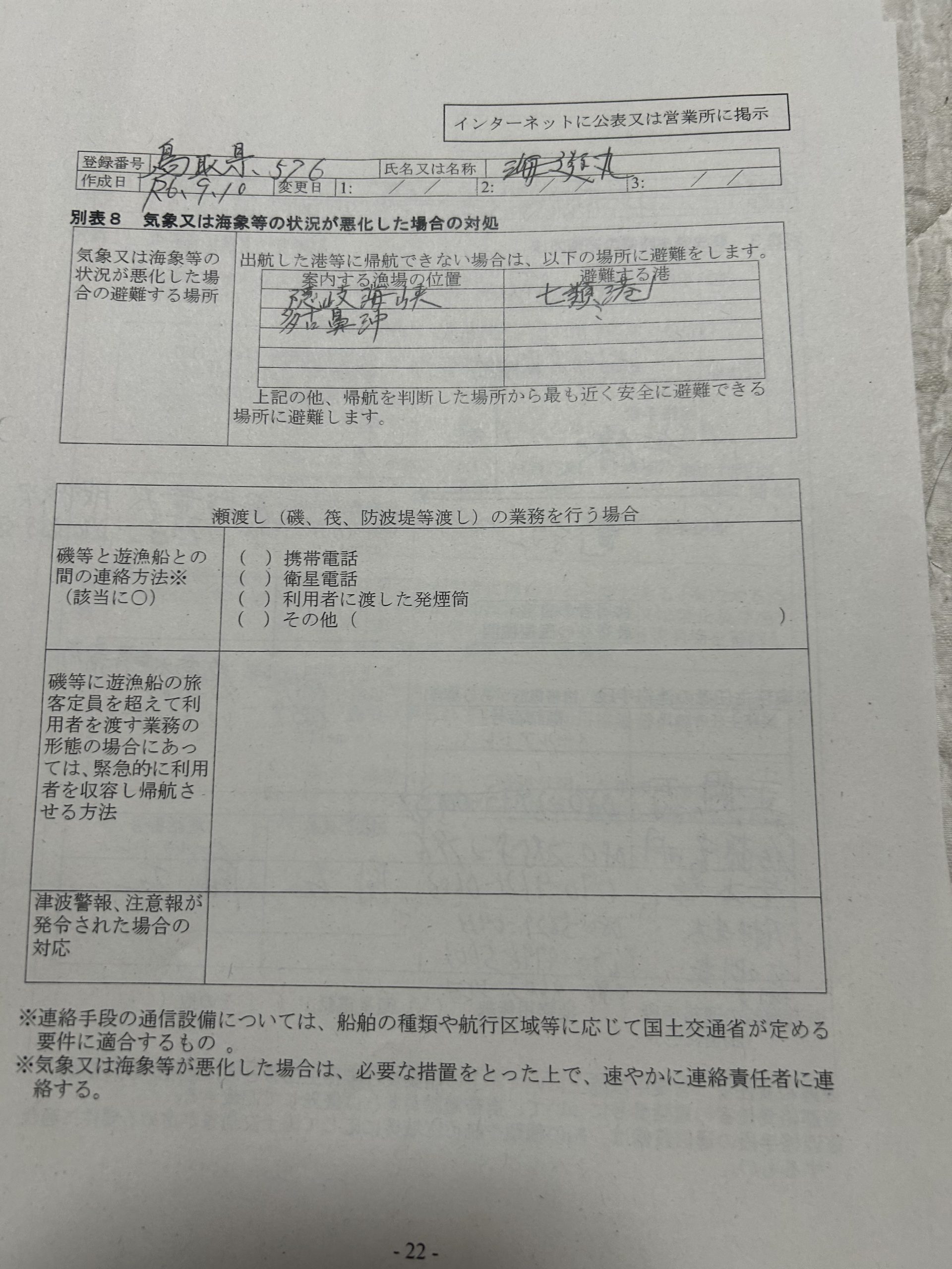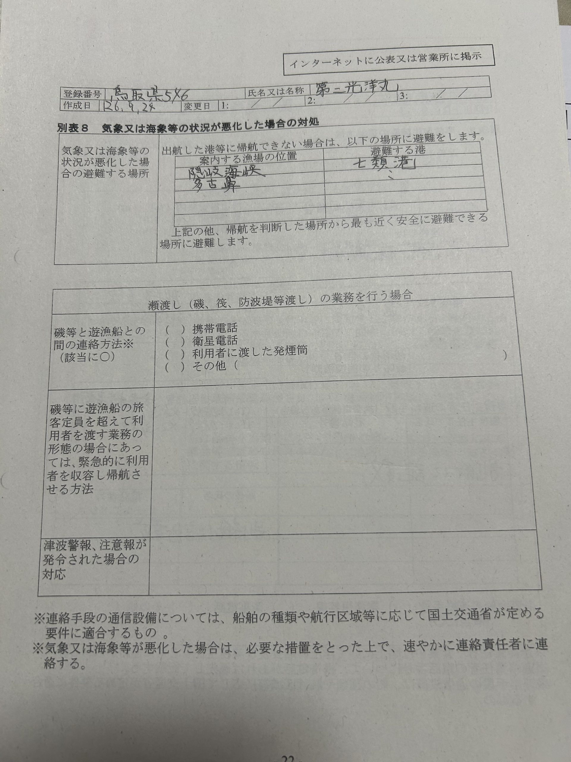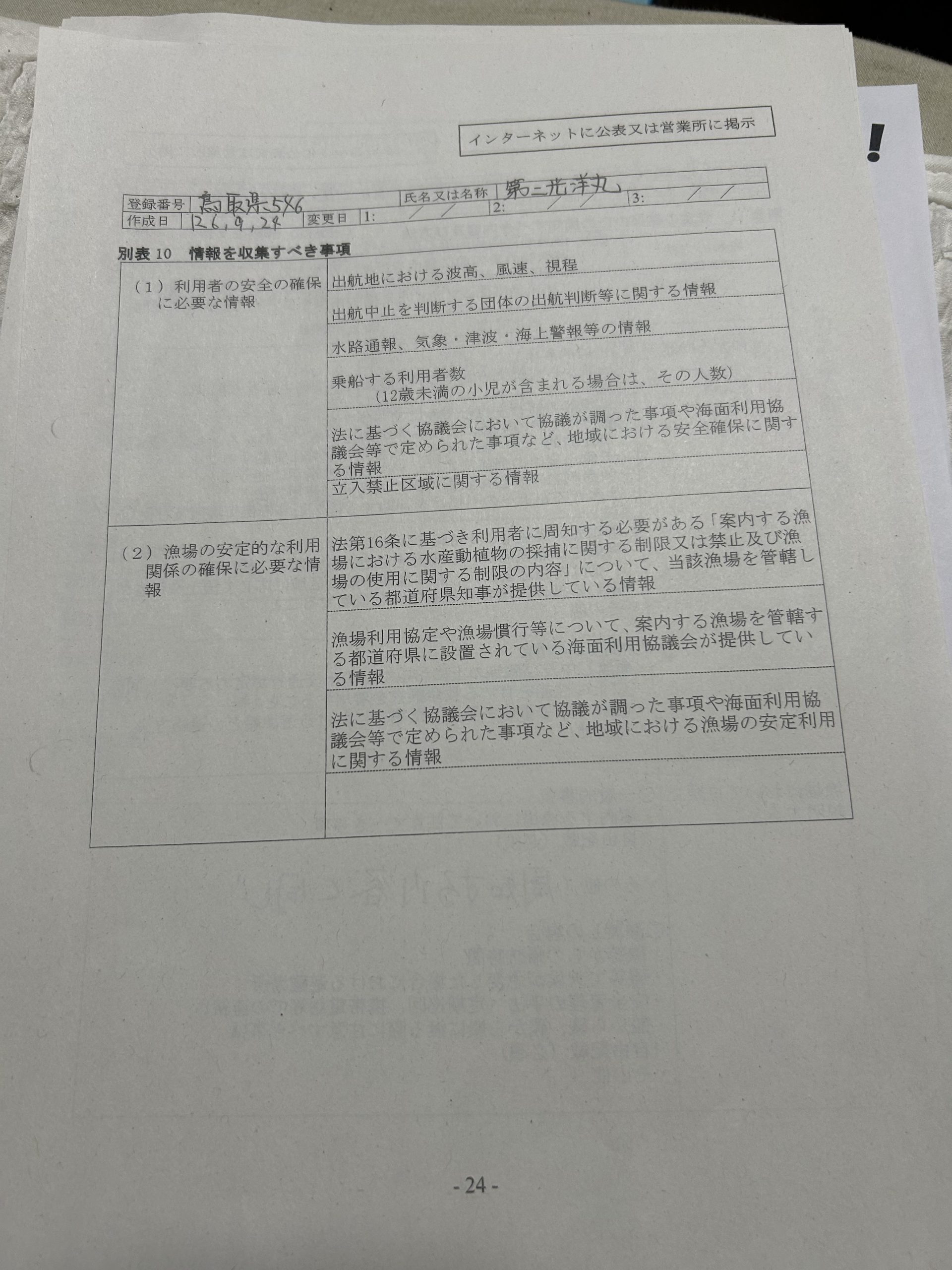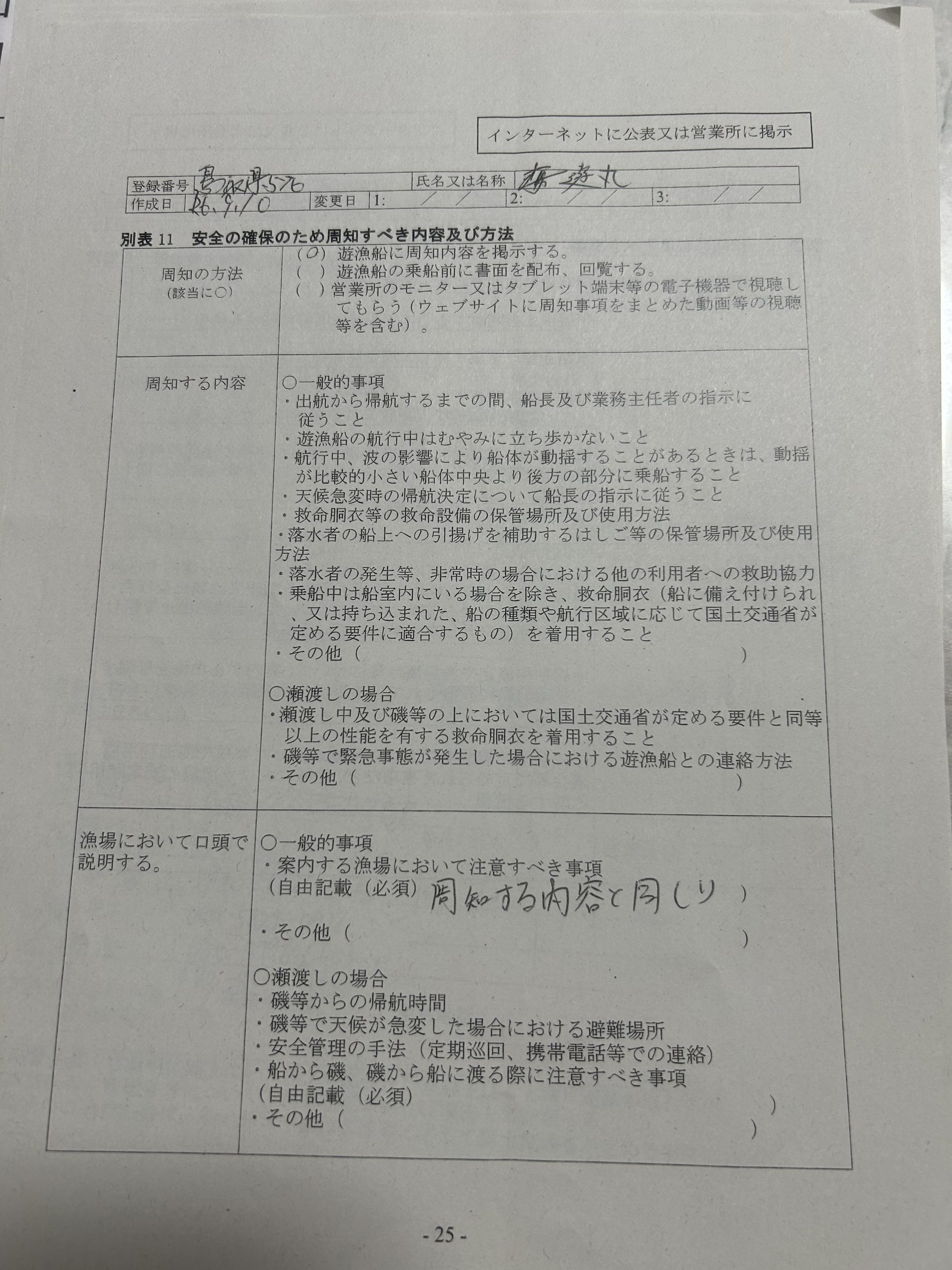 遊漁船業者登録情報