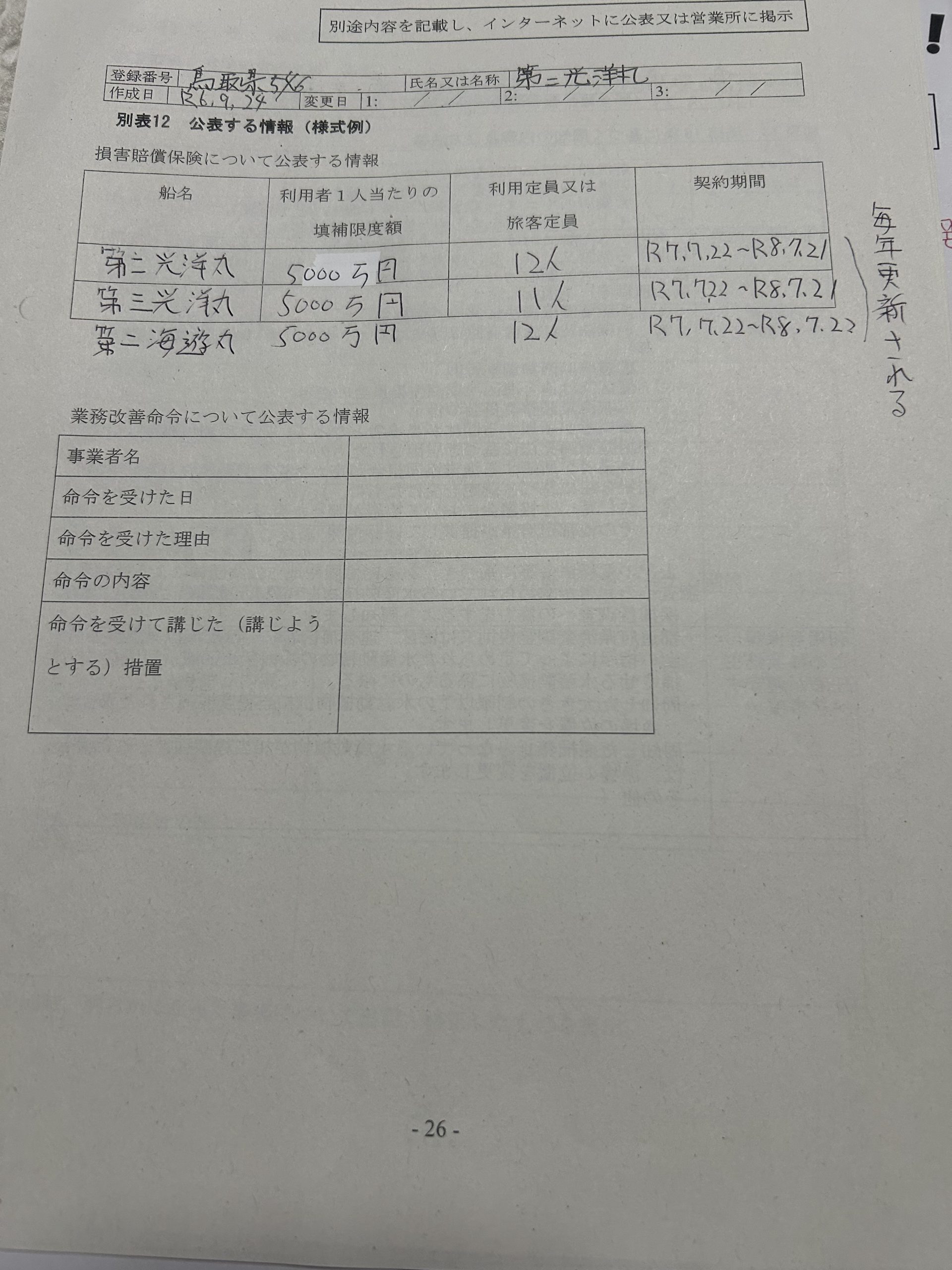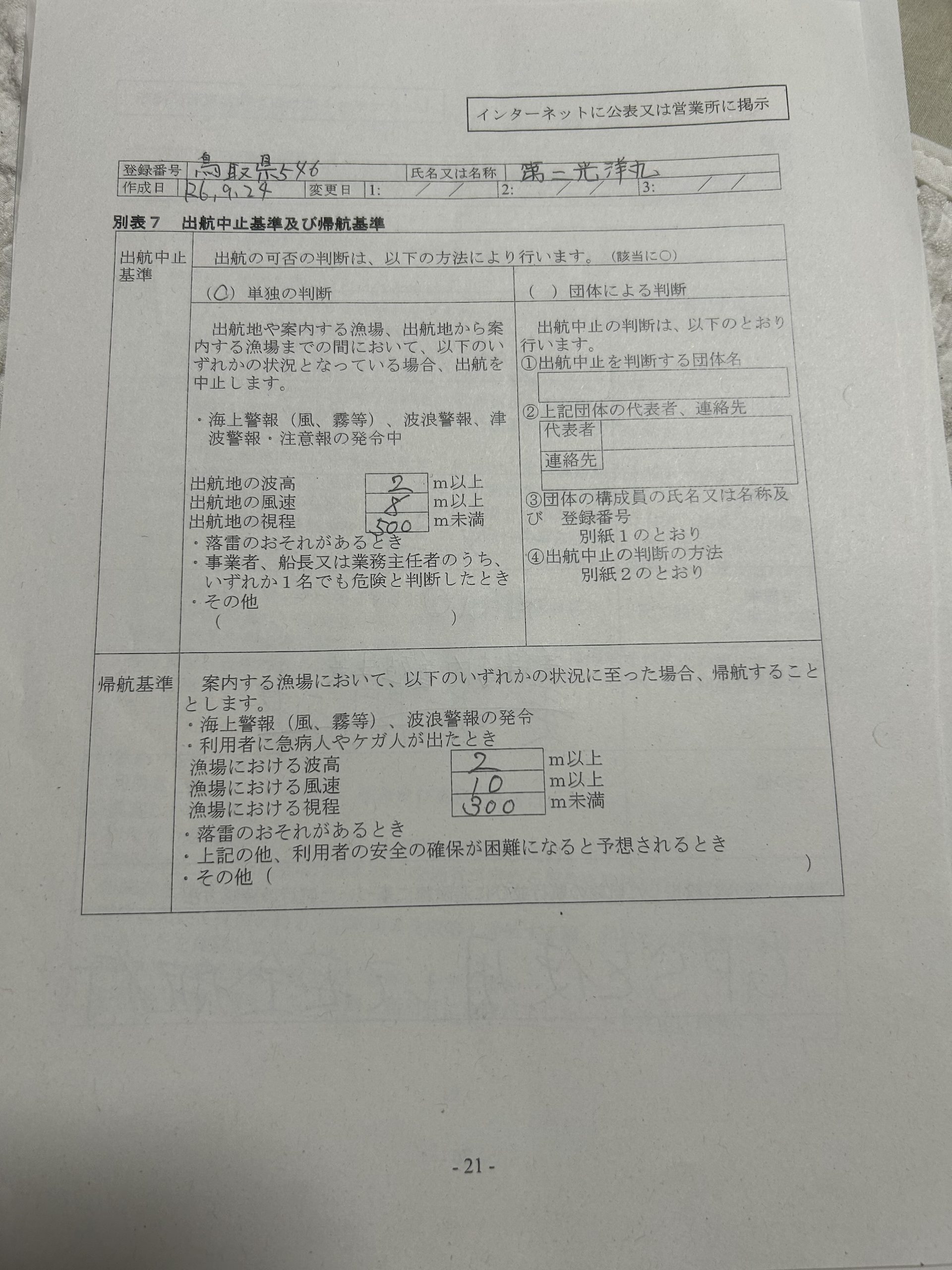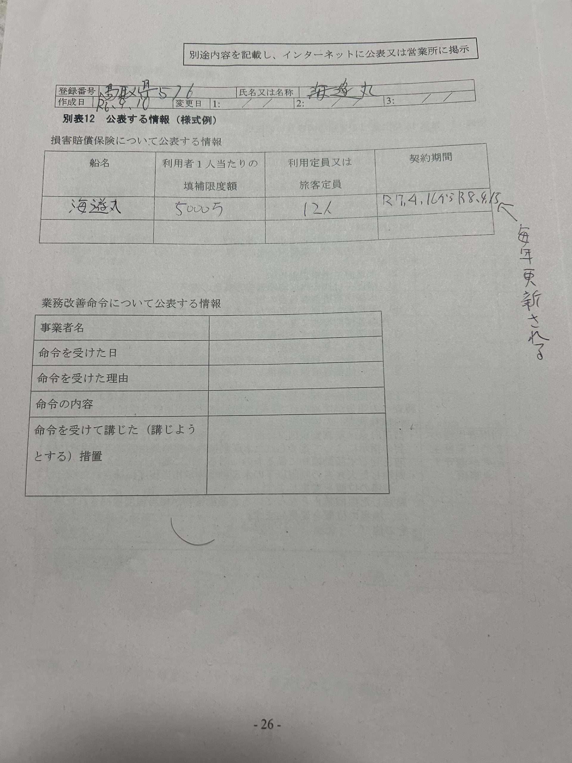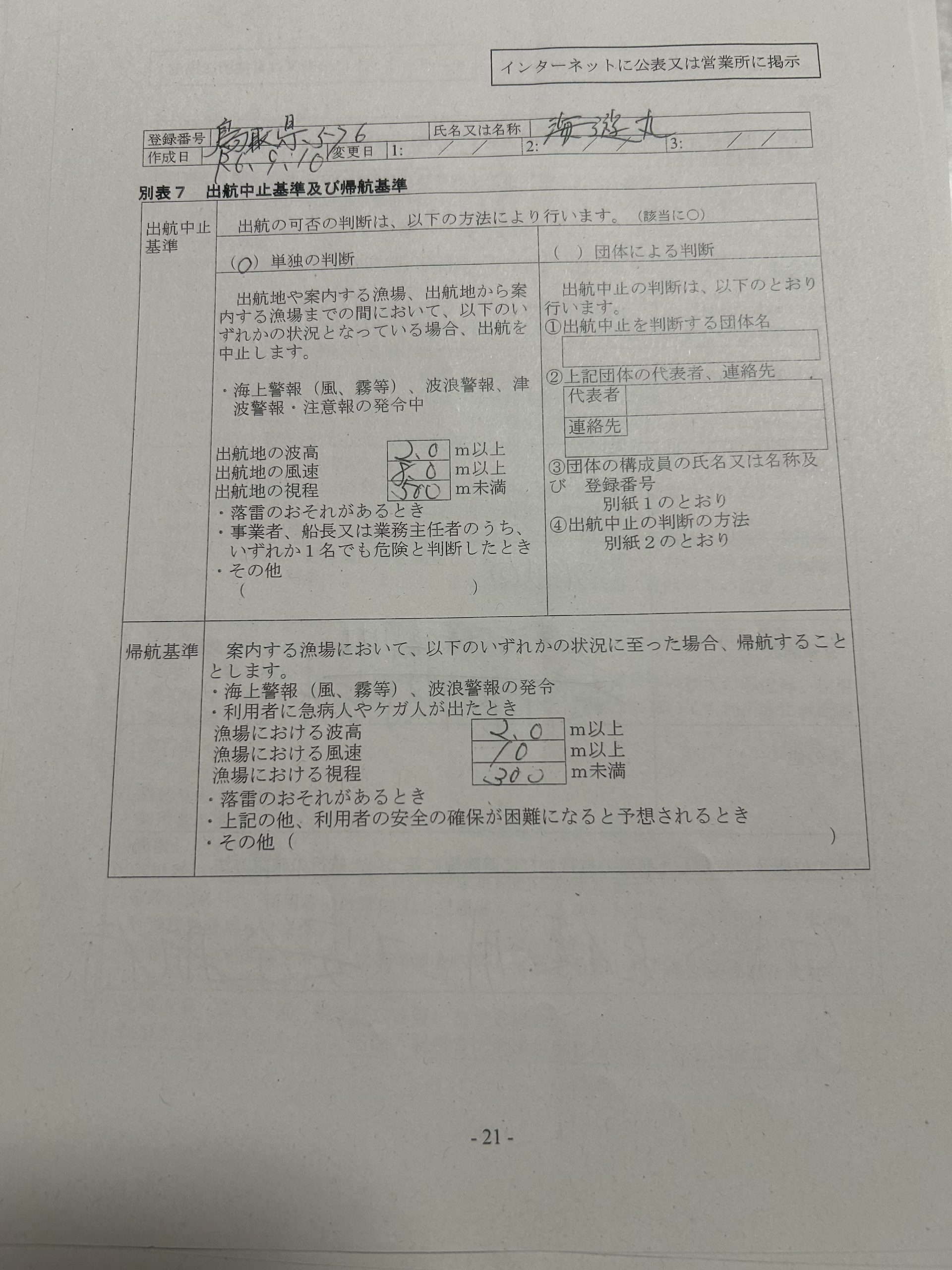 遊漁船業者登録情報